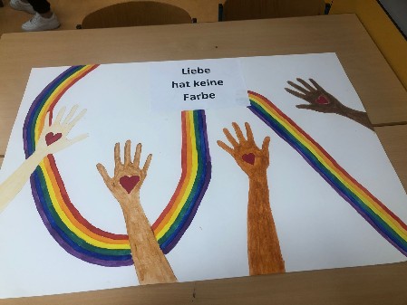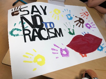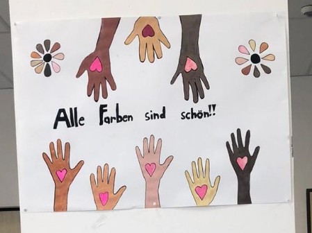 Die Klassenstufe 9 hat unter anderem am heutigen Tag Plakate gestaltet über das Thema Rassismus.